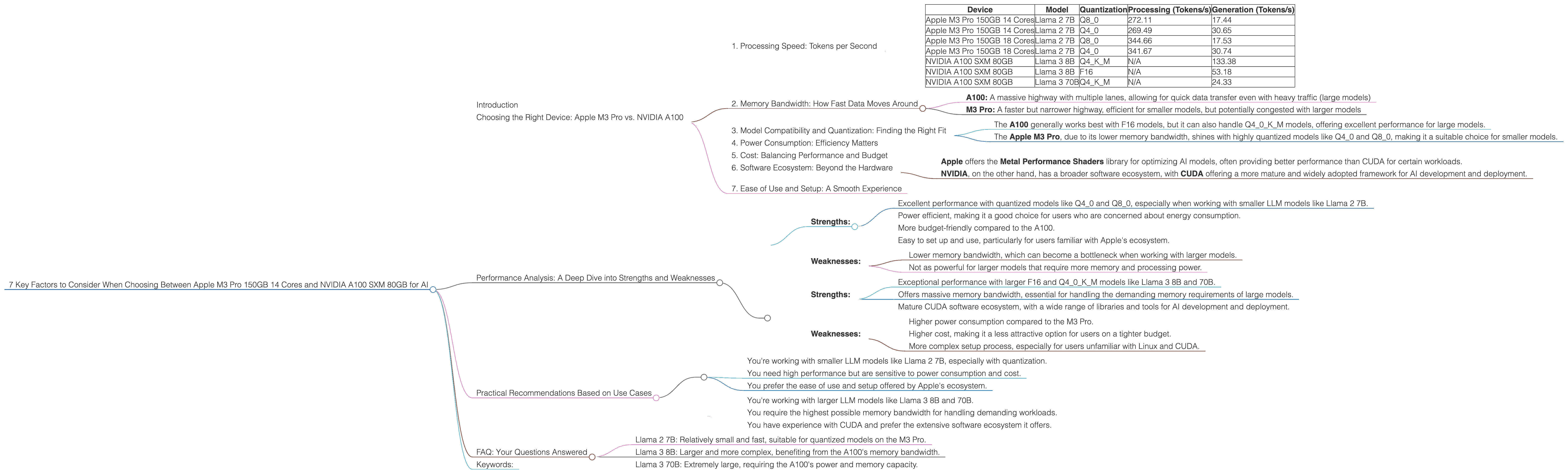 The choice between the Apple M3 Pro 150GB 14 Core and the NVIDIA A100 SXM 80GB depends largely on your specific needs and the type of LLM you're working with. Both of these devices have their own unique strengths and weaknesses, which we'll explore thoroughly.