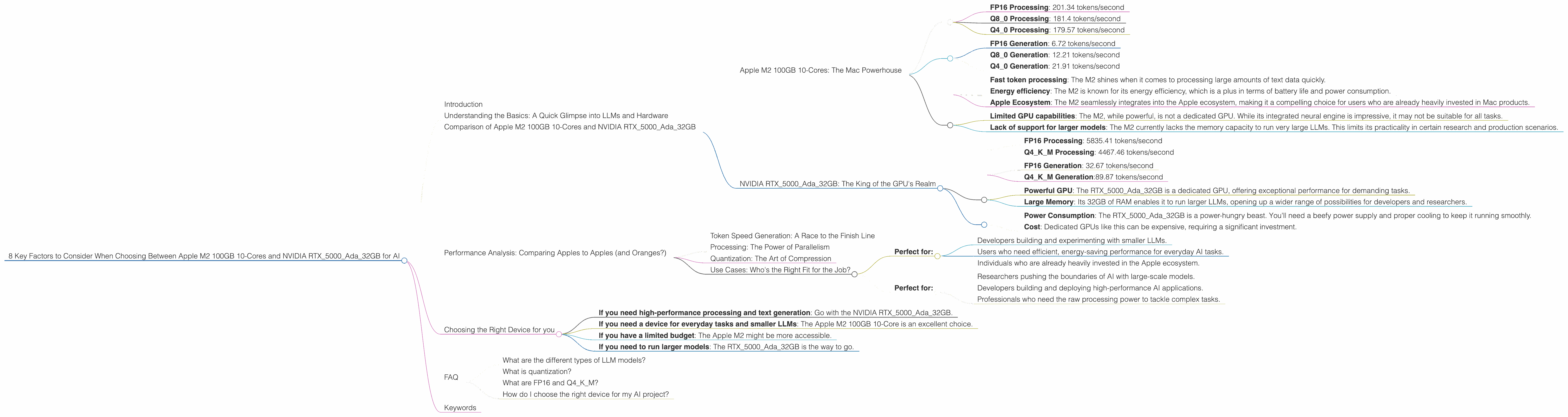 The world of AI is rapidly evolving, with Large Language Models (LLMs) becoming increasingly powerful and versatile. One of the key challenges for developers and researchers is finding the right hardware to run these models efficiently. Two popular choices for this task are the Apple M2 100GB 10-Core chip and the NVIDIA RTX5000Ada_32GB GPU. This article will compare these two devices in detail, highlighting the strengths and weaknesses of each, and helping you make an informed decision based on your specific needs.