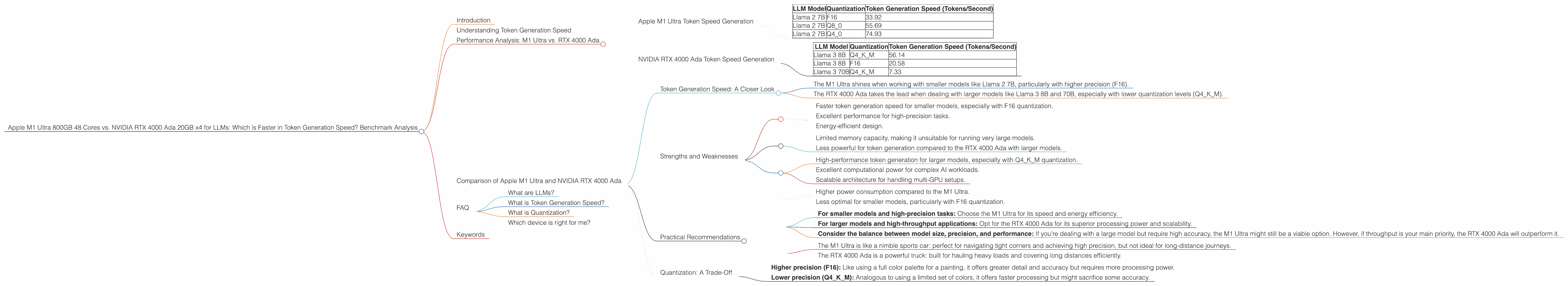 Apple M1 Ultra 800gb 48cores vs. NVIDIA RTX 4000 Ada 20GB x4 for LLMs: Which is Faster in Token Generation Speed? Benchmark Analysis