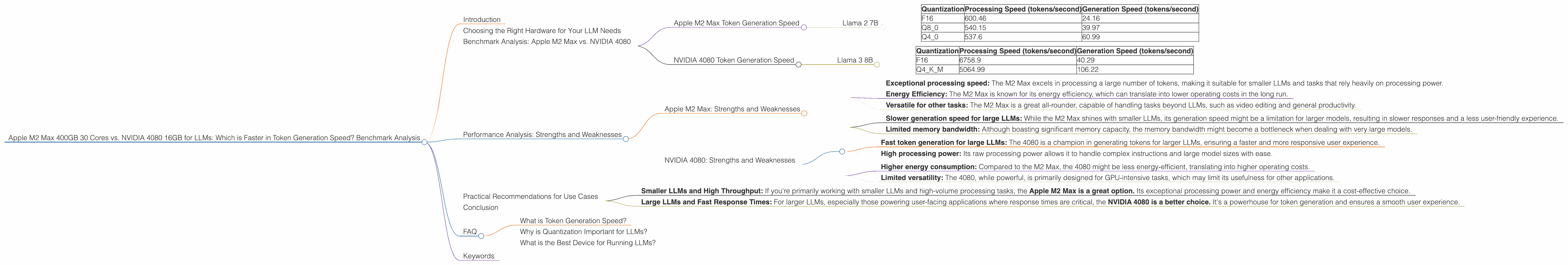 Apple M2 Max, NVIDIA 4080, LLM, Llama model, Token generation speed, Benchmark analysis, Performance, Quantization, Use cases, GPU, Deep learning, NLP, AI, Machine learning,