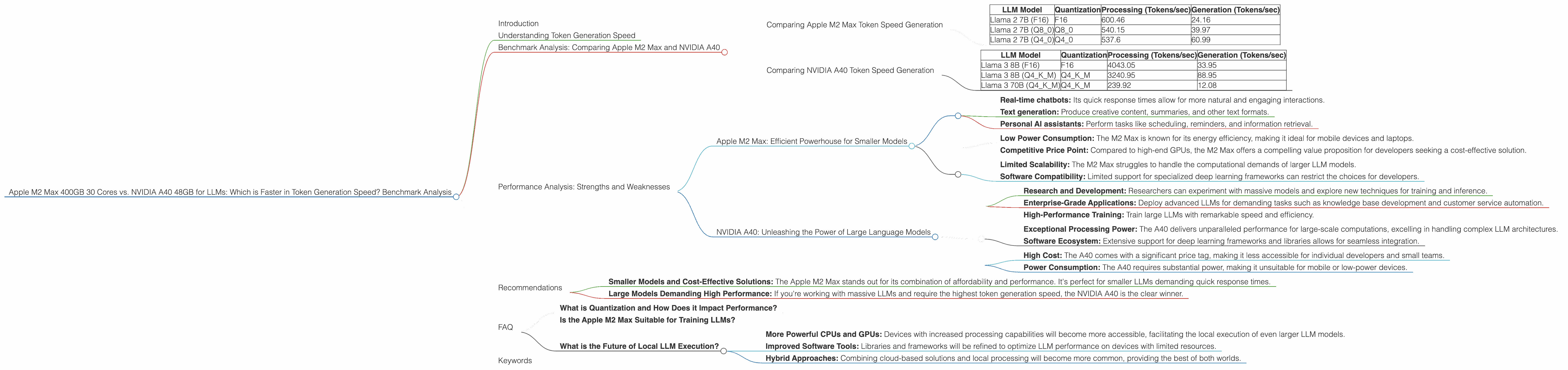 Apple M2 Max 400gb 30cores vs. NVIDIA A40 48GB for LLMs: Which is Faster in Token Generation Speed? Benchmark Analysis