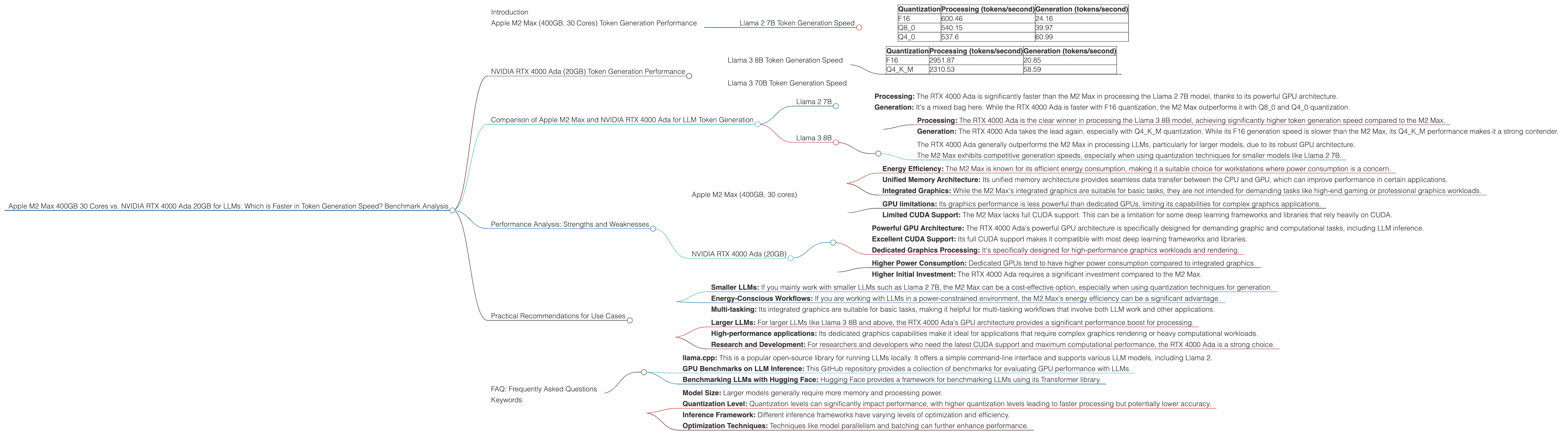 Apple M2 Max 400gb 30cores vs. NVIDIA RTX 4000 Ada 20GB for LLMs: Which is Faster in Token Generation Speed? Benchmark Analysis