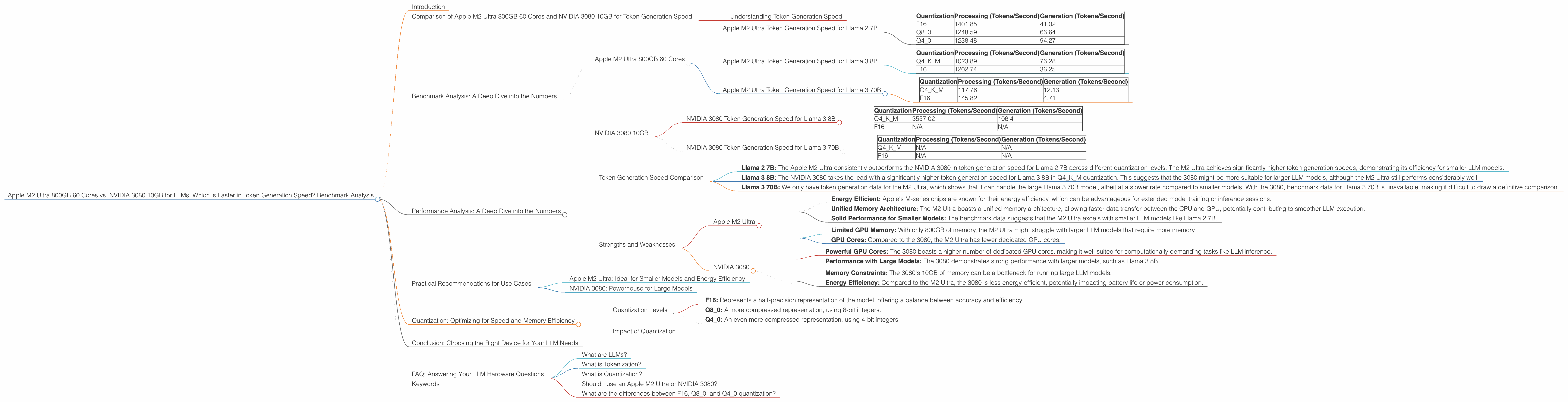 Apple M2 Ultra, NVIDIA 3080, LLMs, token generation, benchmark, performance analysis, Llama 2, Llama 3, quantization, F16, Q80, Q40, GPU, CPU, inference, processing speed, generation speed, memory, use cases, energy efficiency, recommendation,