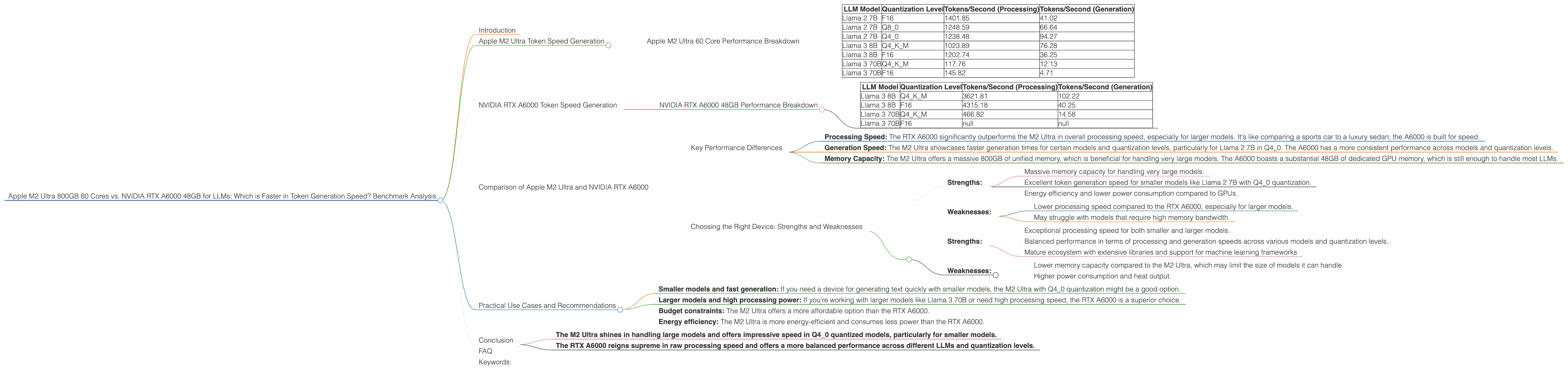 Apple M2 Ultra 800gb 60cores vs. NVIDIA RTX A6000 48GB for LLMs: Which is Faster in Token Generation Speed? Benchmark Analysis