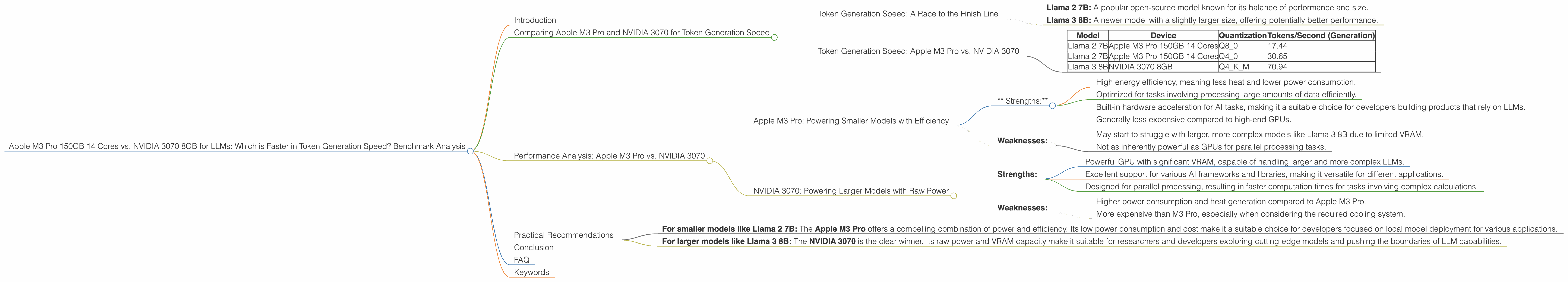 Apple M3 Pro 150gb 14cores vs. NVIDIA 3070 8GB for LLMs: Which is Faster in Token Generation Speed? Benchmark Analysis
