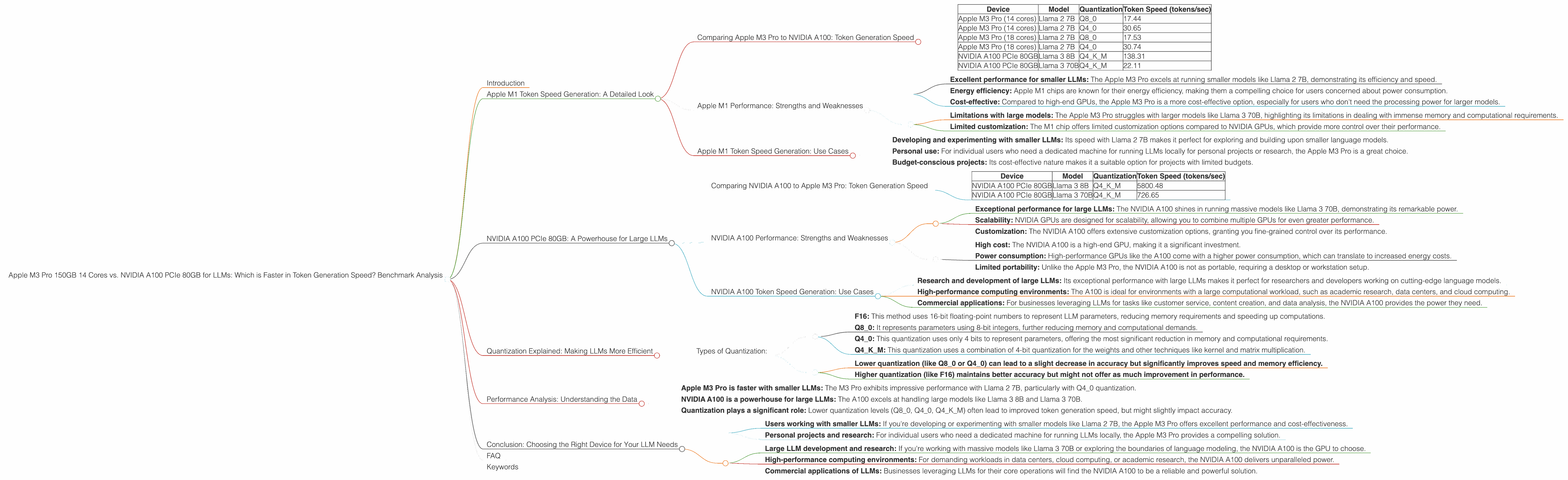 Apple M3 Pro 150gb 14cores vs. NVIDIA A100 PCIe 80GB for LLMs: Which is Faster in Token Generation Speed? Benchmark Analysis