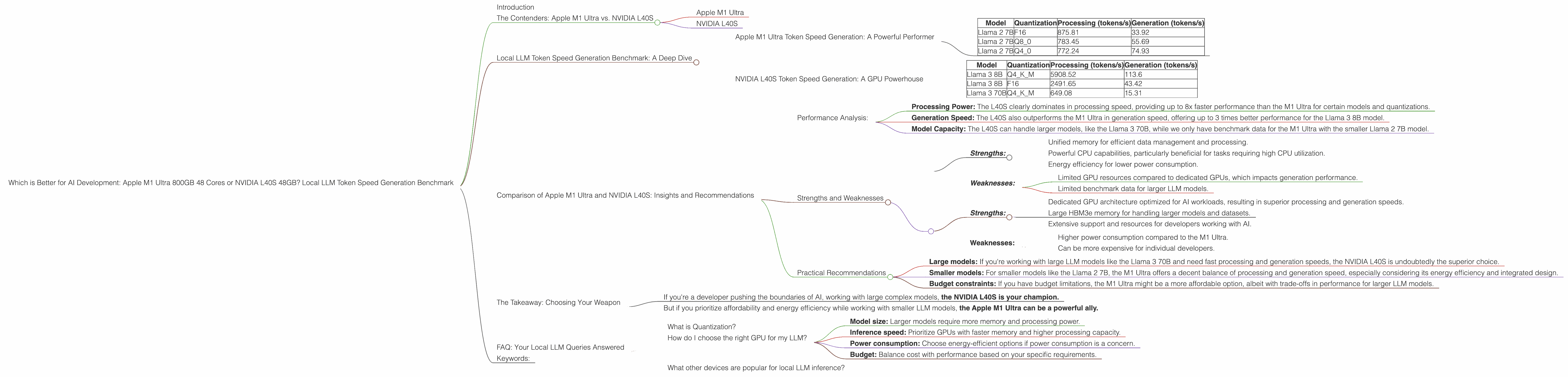 Which is Better for AI Development: Apple M1 Ultra 800gb 48cores or NVIDIA L40S 48GB? Local LLM Token Speed Generation Benchmark