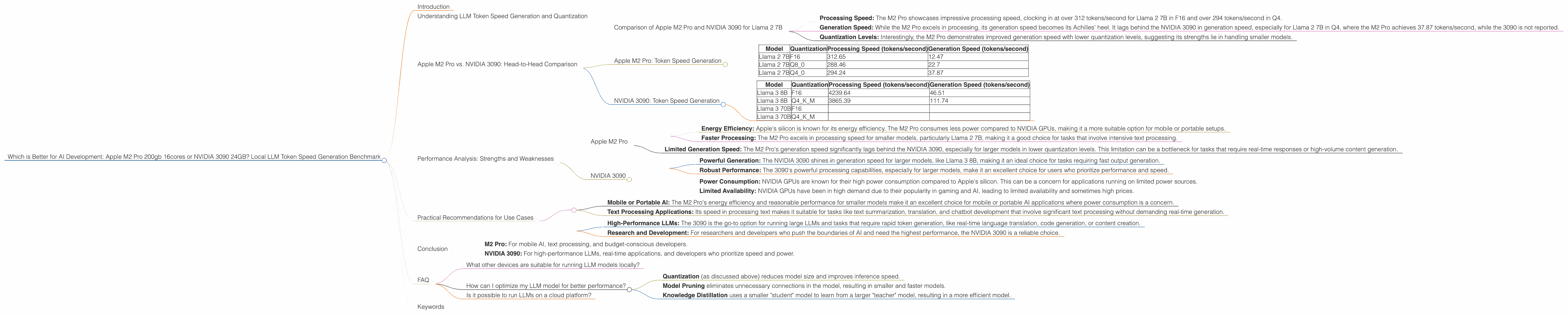 LLM, large language models, token speed, generation, processing, Apple M2 Pro, NVIDIA 3090, Llama 2, Llama 3, quantization, F16, Q4, performance, benchmark, AI development, AI hardware, energy efficiency, GPU, power consumption, mobile AI, cloud platforms, knowledge distillation, model pruning.