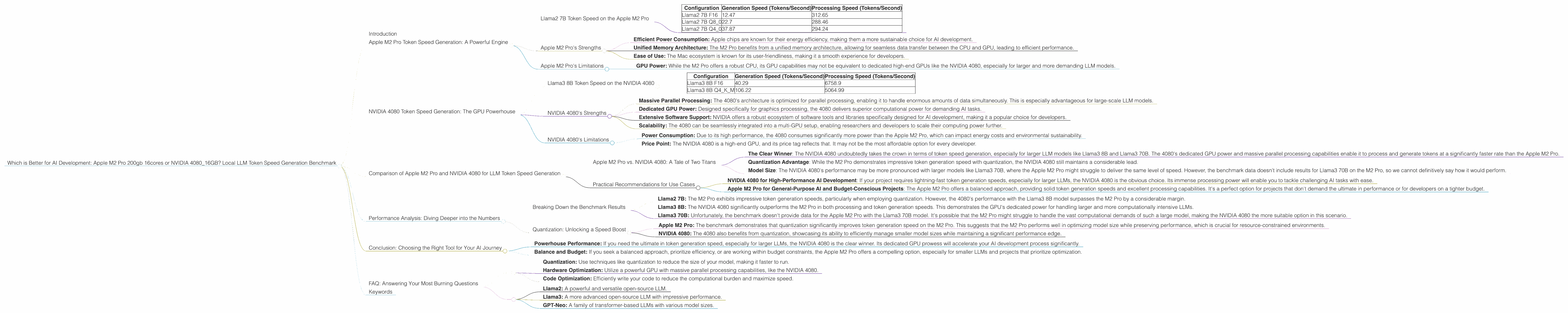 Apple M2 Pro, NVIDIA 4080, LLM, Token Speed, Generation, Processing, Benchmark, AI Development, Llama2, Llama3, Quantization, Performance, Comparison, GPU, CPU, Hardware, Software, Open-Source, Parallel Processing, Efficiency, Power Consumption, Trade-off, Budget, Use Case, Local