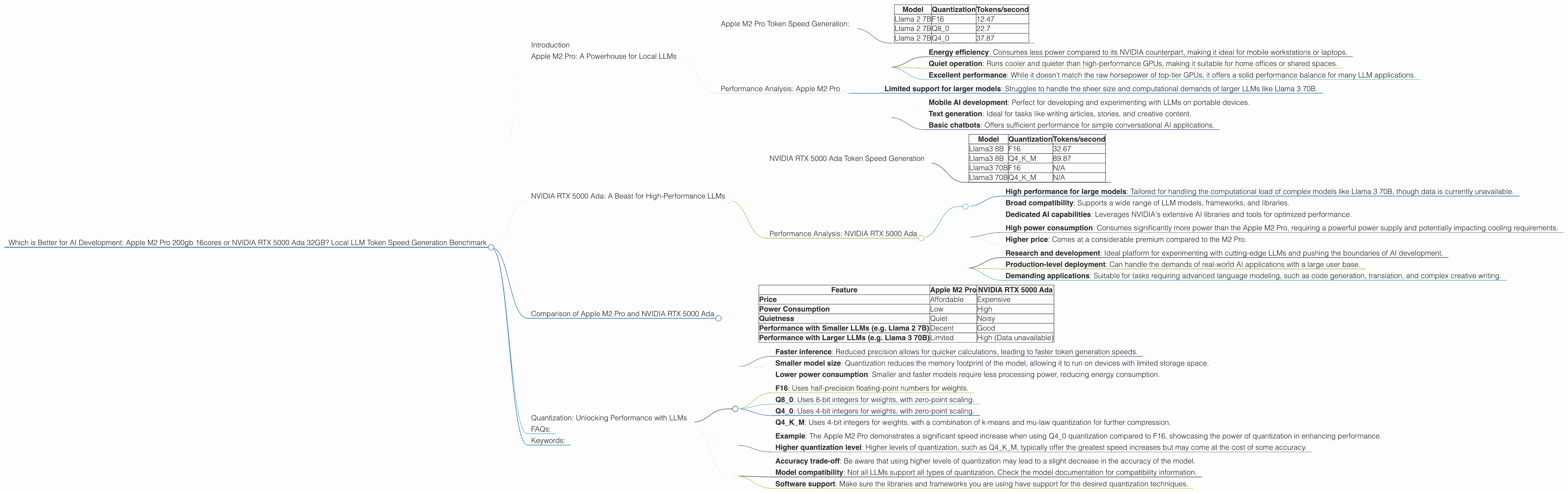 Apple M2 Pro, NVIDIA RTX 5000 Ada, LLM, Large Language Model, Token Speed, Quantization, AI Development, Llama 2, Llama 3, F16, Q80, Q40, Q4KM, Local LLM, Performance Benchmark, GPU, CPU, Inference, Text Generation, Conversational AI, Coding, Creative Writing, AI Research, Cloud Computing, Hardware, Software, Budget, Use Case, Compatibility