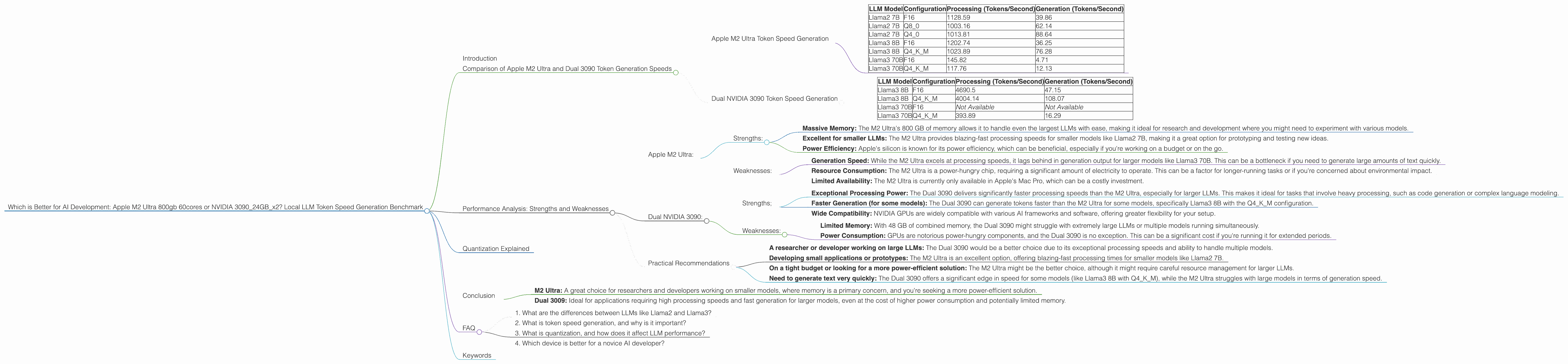 Apple M2 Ultra, NVIDIA 3090, LLM Token Speed, Local LLM Development, Generation Speed, Processing Speed, Quantization, Llama2 7B, Llama3 8B, Llama3 70B, AI Development, GPU, CPU, AI Hardware, Machine Learning, Deep Learning, AI Performance, Tokenization, AI Benchmark, F16, Q80, Q4K_M