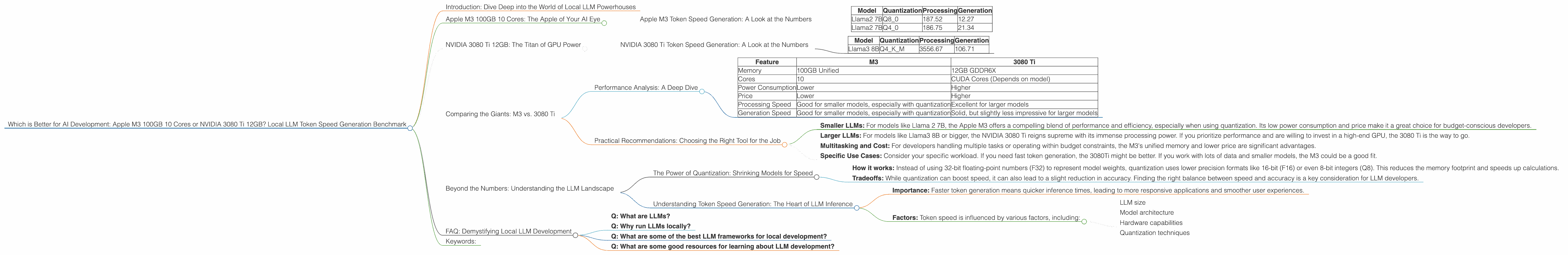 Which is Better for AI Development: Apple M3 100gb 10cores or NVIDIA 3080 Ti 12GB? Local LLM Token Speed Generation Benchmark