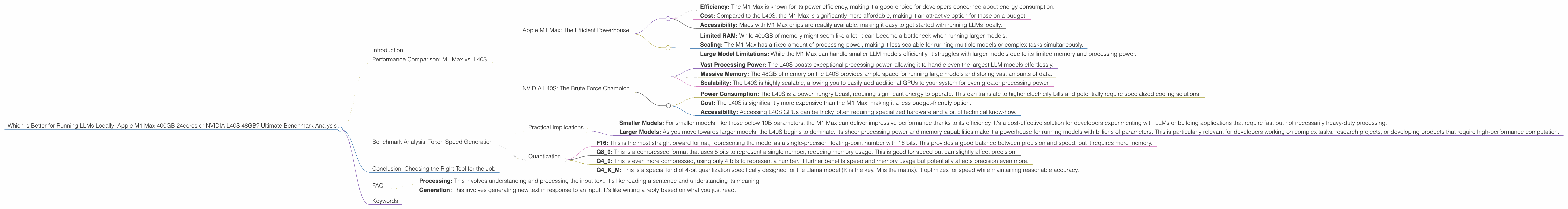 The world of large language models (LLMs) is exploding, with new models and applications emerging constantly. For developers and geeks who want to explore these powerful models, the question arises: how can you run them locally? This article dives into the performance differences between two popular devices for running LLMs locally: the Apple M1 Max 400GB 24cores and the NVIDIA L40S 48GB. We'll analyze their strengths and weaknesses, explore their performance on various LLM models, and ultimately help you choose the best device for your needs.