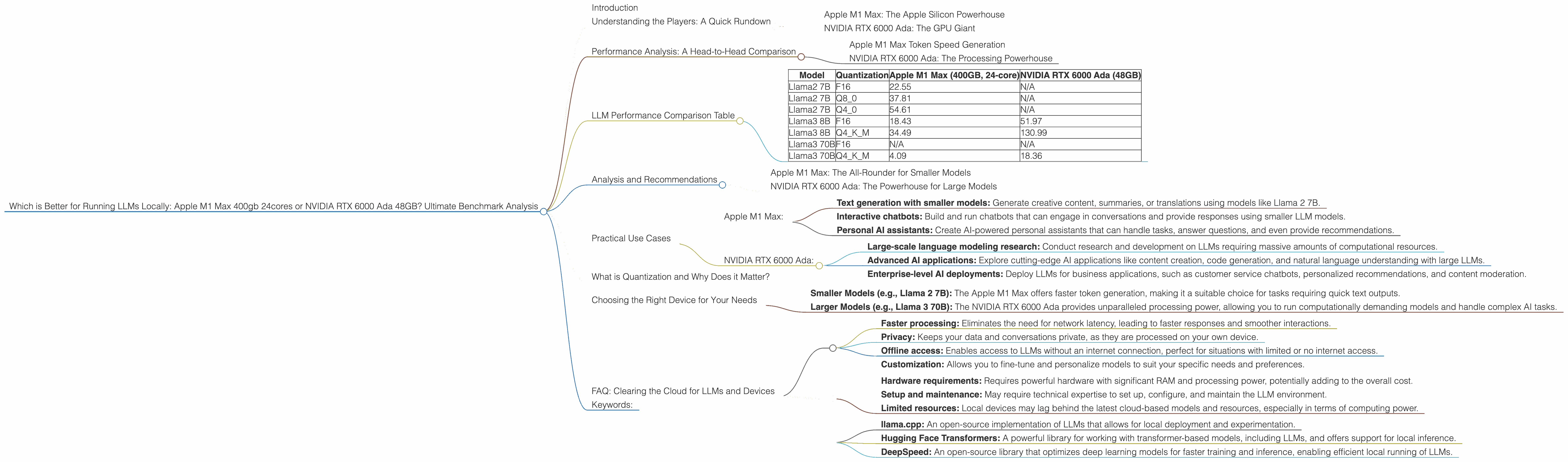 Which is Better for Running LLMs locally: Apple M1 Max 400gb 24cores or NVIDIA RTX 6000 Ada 48GB? Ultimate Benchmark Analysis