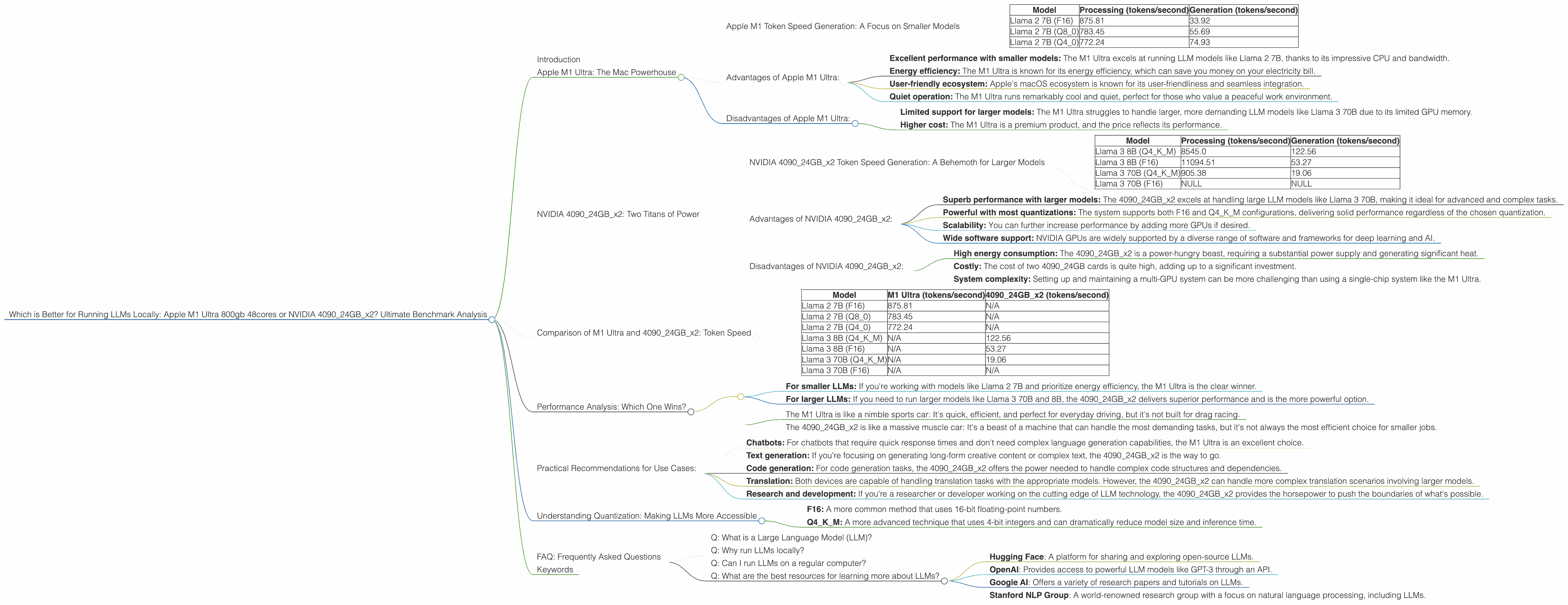 LLM, large language model, Apple M1 Ultra, NVIDIA 4090, GPU, benchmark, performance, token speed, Llama 2, Llama 3, quantization, F16, Q4KM, chatbot, text generation, translation, summarization, code generation, energy efficiency, cost, scalability, practical recommendations, use cases, FAQ, resources