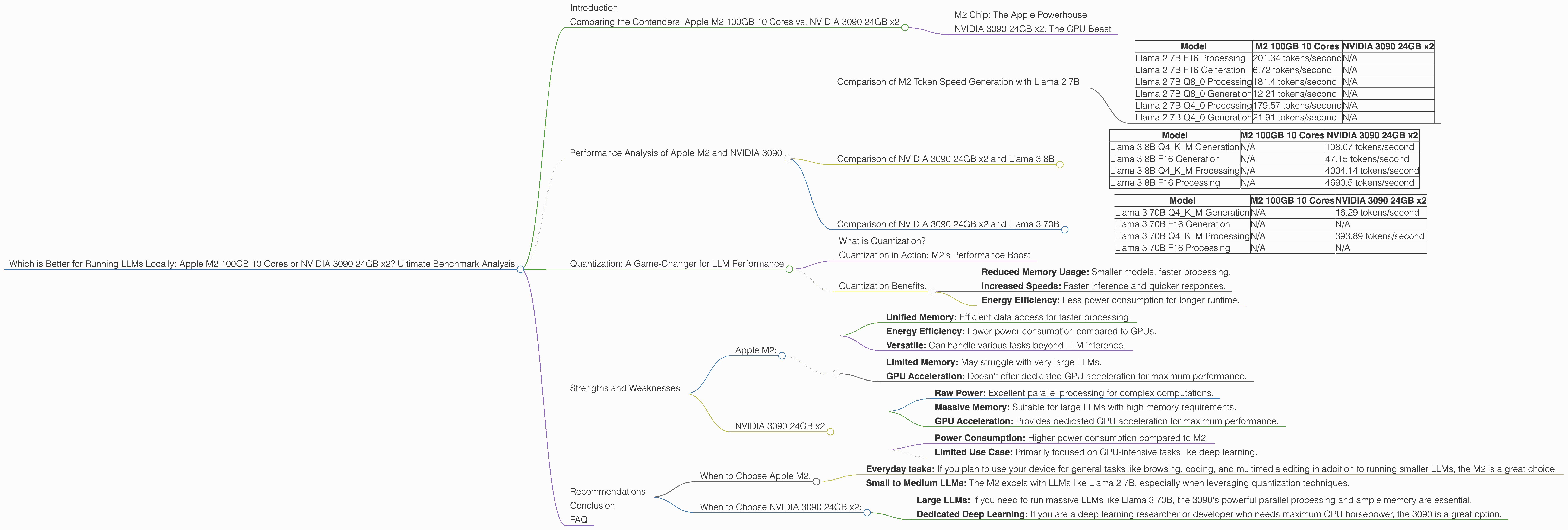 Keywords: Apple M2, NVIDIA 3090, LLM, Large Language Model, local inference, performance, benchmark, tokens per second, quantization, unified memory, GPU acceleration, Llama 2 7B, Llama 3 8B, Llama 3 70B.