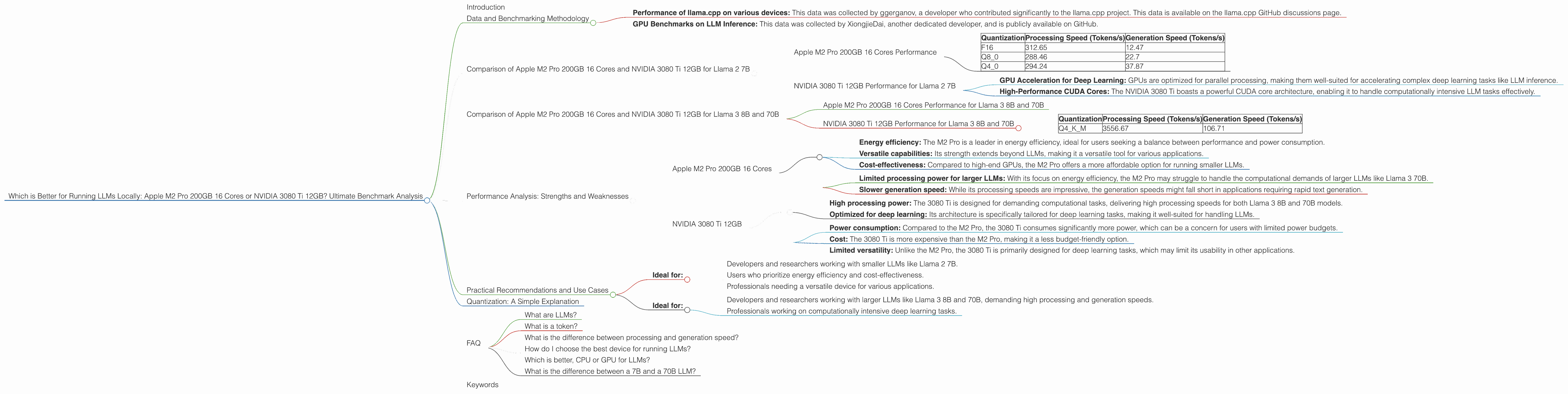 In this comprehensive analysis, we'll be comparing two popular contenders: the Apple M2 Pro 200GB 16-Core CPU and the NVIDIA 3080 Ti 12GB GPU. We'll delve into the performance of these devices on various LLM models, explore their strengths and weaknesses, and provide practical recommendations for use cases. Buckle up, geeks, because this journey into the world of local LLM processing is about to get interesting!