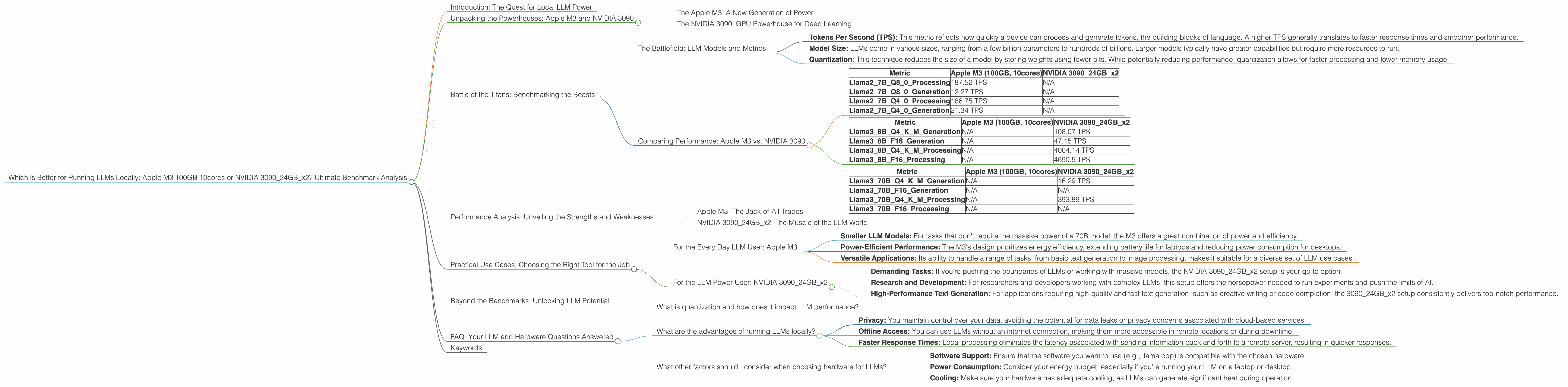 The choice between the Apple M3 and NVIDIA 309024GBx2 setup ultimately depends on your specific needs and use cases. However, the trend toward smaller, more efficient LLM models and advancements in hardware technology suggest that local LLMs will become increasingly accessible and powerful in the future.